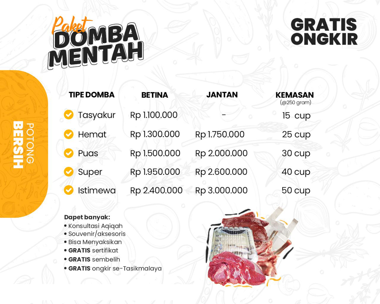 Paket aqiqah potong/sembelih, dan diantar sampai alamat tujuan.